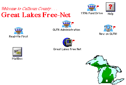 From here you can access the system by using your mouse and clicking on the "Great Lakes Free-Net" icon: