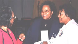 Lindsey Coleman is congratulated by Prayer Breakfast attendees on her part in the reading from the New Testament (done with her sister Stacy) in the morning's events. |