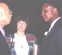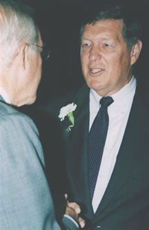 Ambassador Robert A. Seiple is greeted by Dr. Arlon Elser. |